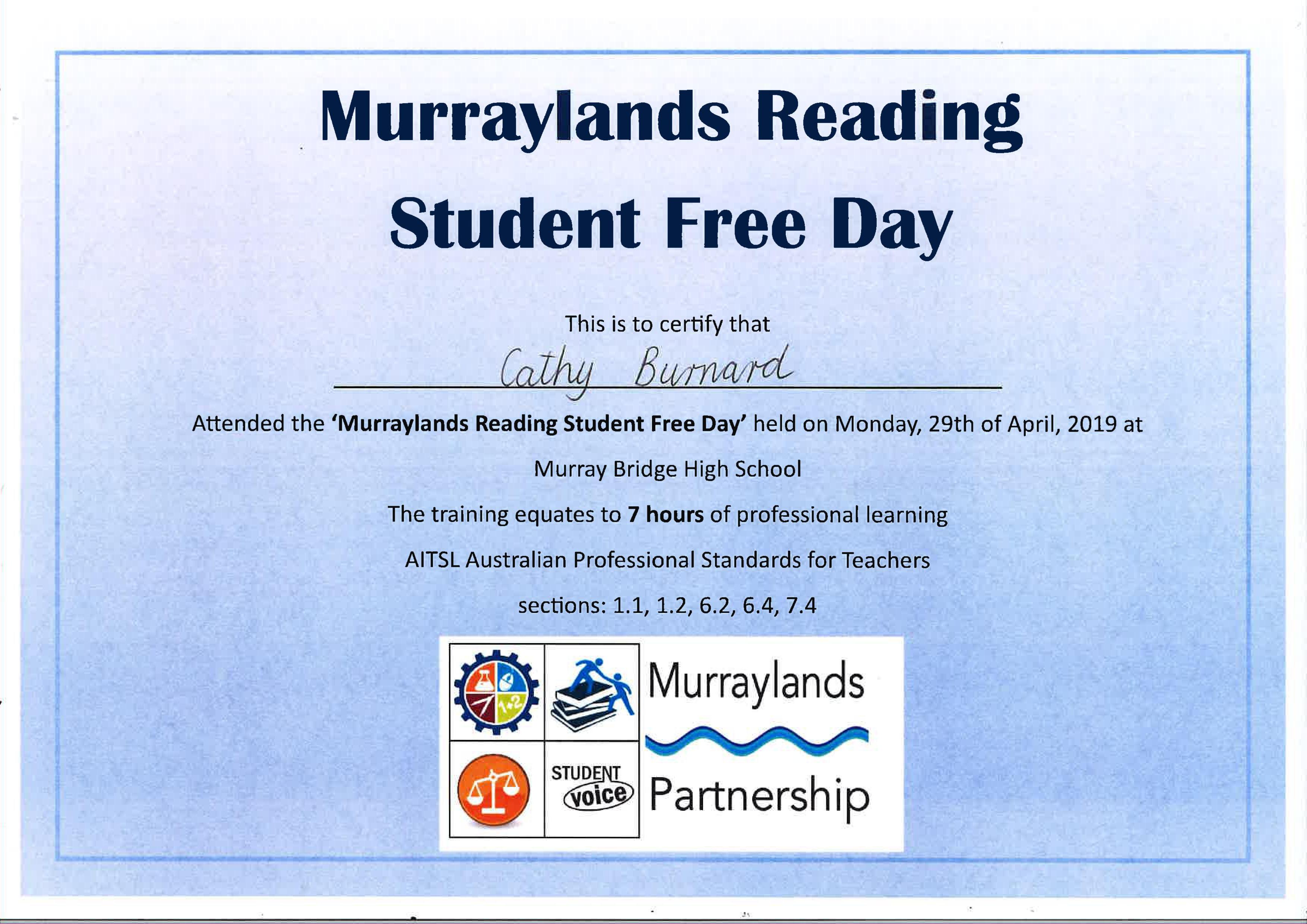 The Murraylands Reading Student Free Day was designed to progress the partnership's goals in literacy improvement. I attended as part of my third professional placement with Mannum Community College (6.2).
